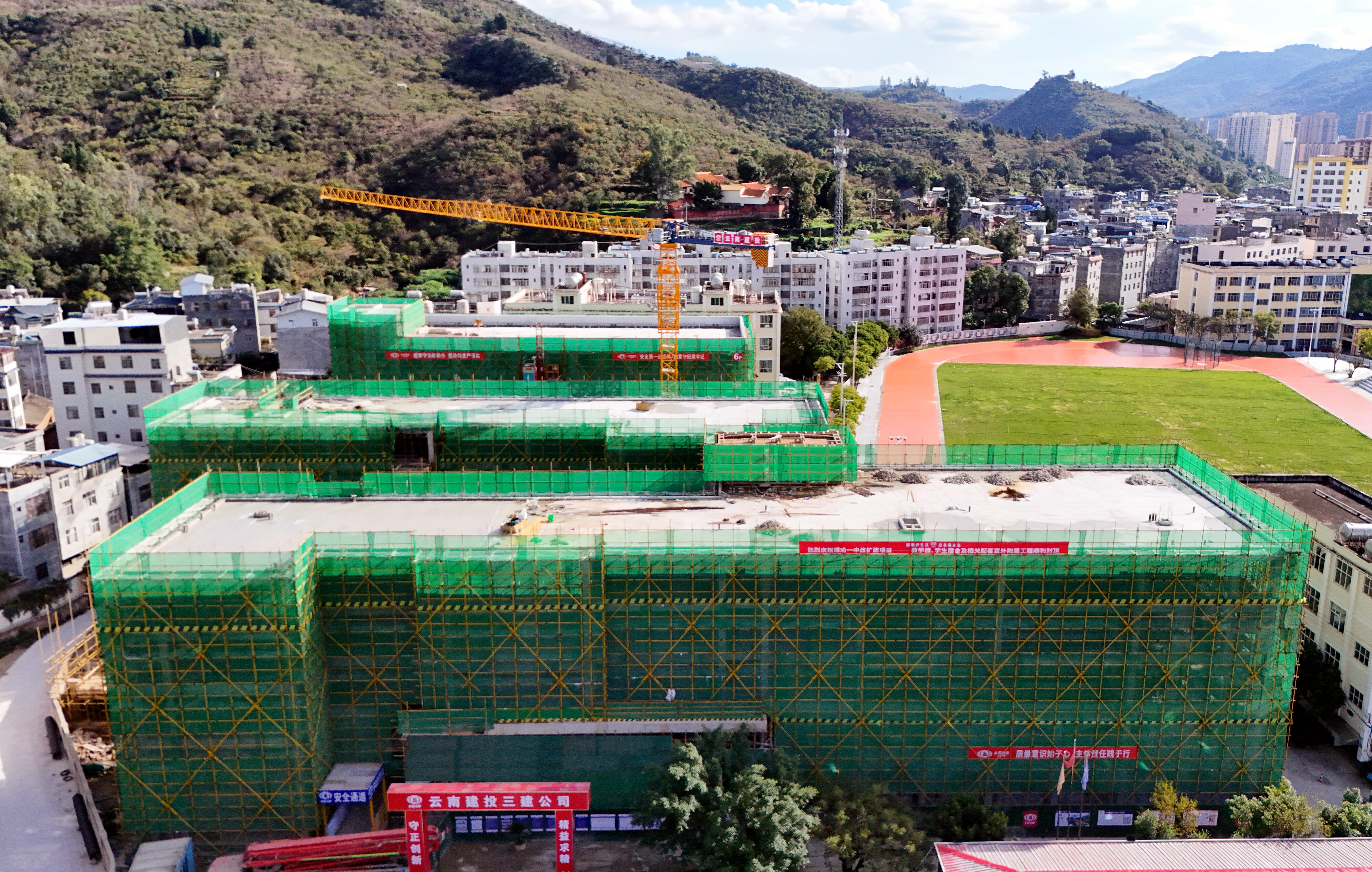 奮戰80天決勝全年度丨祿勸第一中學改擴建項目主體結構全面封頂